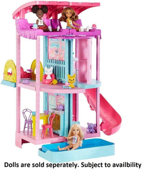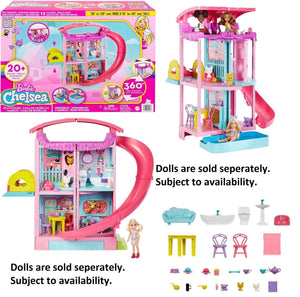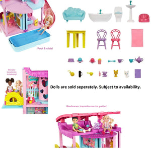 Barbie Dollhouse Chelsea Playhouse with Transforming Areas 20+ Pieces Pool Play