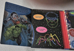 1x Marvel avengers bard book, 2 multicolored markers, 1 magic pad