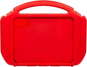 8 Markers, 24 Crayons, 12 Colored Pencils, 8 Washable Watercolors, 1 Paint Brush, 1 Safety Scissor, 1 Washable Glue, 1 Red Storage Case (styles may vary), and 30 colored paper sheets measuring approximately 5" x 7".