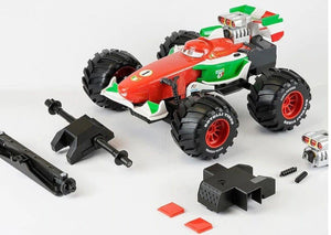 - Customizable with 24 pieces including off-road tires, race tires, engine block, suspension set, tool, and additional parts for modifications