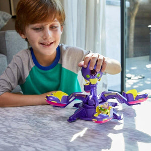 The Terrorantulus Playset is an exciting amusement park ride a bright purple design with six arms that accommodate six mini figures.