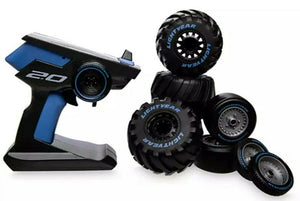 Set includes one car, one remote control, four off-road tires, four race tires, four drag tires, one engine, two front ends, two back ends, and one tool