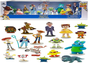 Set includes eighteen figurines:WoodyBuzz LightyearJessieRexBullseyeForkyGabbyBo PeepDuckyBunnyTrixieButtercupDollyDuke CaboomTwo AliensBensonHammMr. Pricklepants