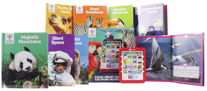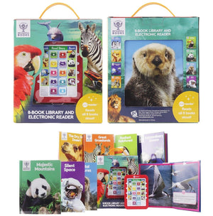 Me Reader: Take a tour of the various ecosystems that make Earth unique in our solar system - from oceans, to mountains, to space, and everything in between - in this fascinating 8-book set. Each book explores an ecosystem and the characteristics and creatures that make it special. The books come packaged with a sleek 18-button Me Reader module that reads each book aloud. Choose the book you want to explore, press the matching book and page buttons on the module, and hear the whole book read aloud, along with sounds that bring the concepts to life! Following along in the book provides an independent reading experience that builds confidence in beginning readers. Story sounds and expressive narration enhance reading comprehension.