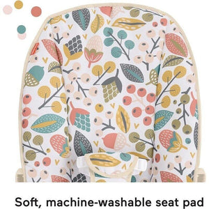 Lightweight infant seat that bounces along with your baby's natural movements. Two bat toys on a toy bar for engaging play. Machine-washable seat pad. Adjustable 3-point harness, and non-skid feet.