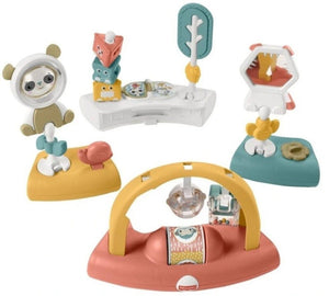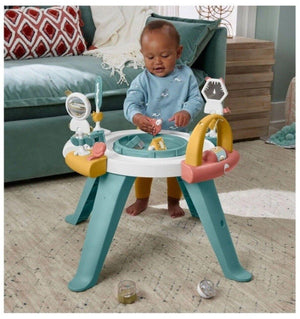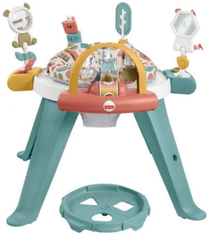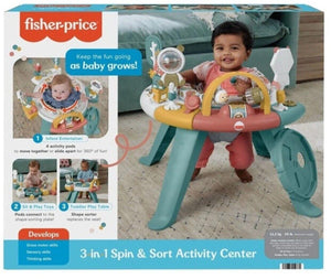 3-in-1 Spin & Sort Activity Centre keeps playtime going as your baby grows from infant to toddler! It starts as a sit-in infant entertainer with a spinning seat and moveable activity pods for 360 degrees of hands-on play. Then, as your baby grows, you can snap the activity pods to the shape-sorter plate, so your baby can explore as they sit up on the floor. And when your toddler is ready to stand up and walk around, swap out the seat for the shape-sorter plate and the activity centre becomes a toddler play table! This convertible activity centre is loaded with customizable play to keep your growing explorer entertained day after day.