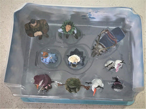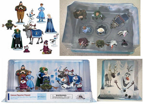Set includes 10 fully sculptured figurines: Elsa Anna Three Olaf poses Kristoff Sven Oaken Cat Tree Figure