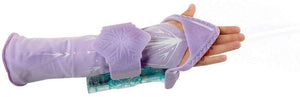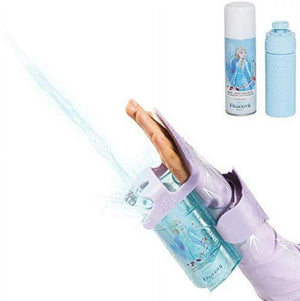Be just like Queen Elsa and magically shoot ice into the world around you! With this great glove, you can conceal your ice powers until you're ready to 'let it go!' The sleeve features pretty jewel detailing and lace trimming, reflective of Queen Elsa's dress. The icy blue glitter bracelet secures the spray ice can underneath your arm. The spray ice trigger is connected to the bottom of the ring, so simply lift your finger to activate the magic ice. Magic ice refill cans and water bottle can slide easily into the bottom of the bracelet.