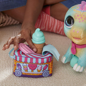 adorable furReal Snackin' Sally dinosaur plush toy ice cream set with accessories