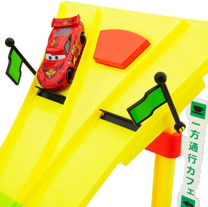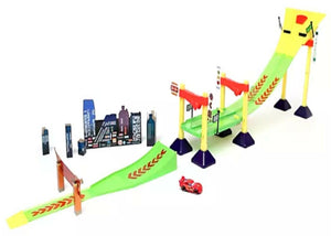Take Lightning McQueen out for a late night spin on our glow-in-the-dark track set. Your little racer will speed over our neon track with secret trap door to win the World Grand Prix.