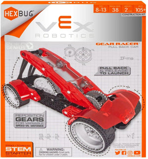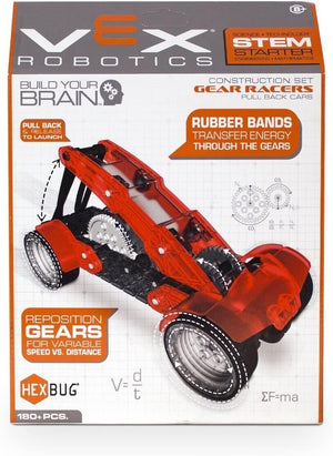 Vex Robotics: Build your own pull-back car from scratch with this Gear Racers construction set that teaches little engineers how machines convert potential energy into kinetic energy - simply pull-back and release to launch the race car into action!