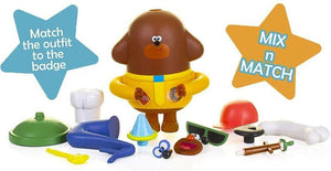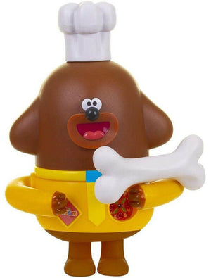 1 x Duggee with his Beret, Glasses, Saxophone, Chef’s Hat, Baseball Cap, Woolly Hat, Happy Face, Wizards Hat, Sun Glasses, Wand, Bone, and the famous Stick