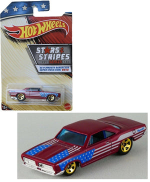 Hot Wheels 1:64 Antique Stars & Stripes 3+ Toy- Polymouth Barracuda 1968 race car-History Plymouth Camaro