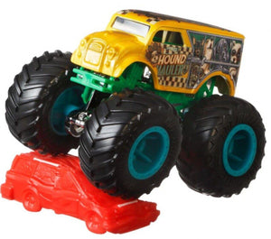 Hot Wheels Monster Hound Hauler Jam Truck with Crushable Car 1:64 Scale for ages 3+