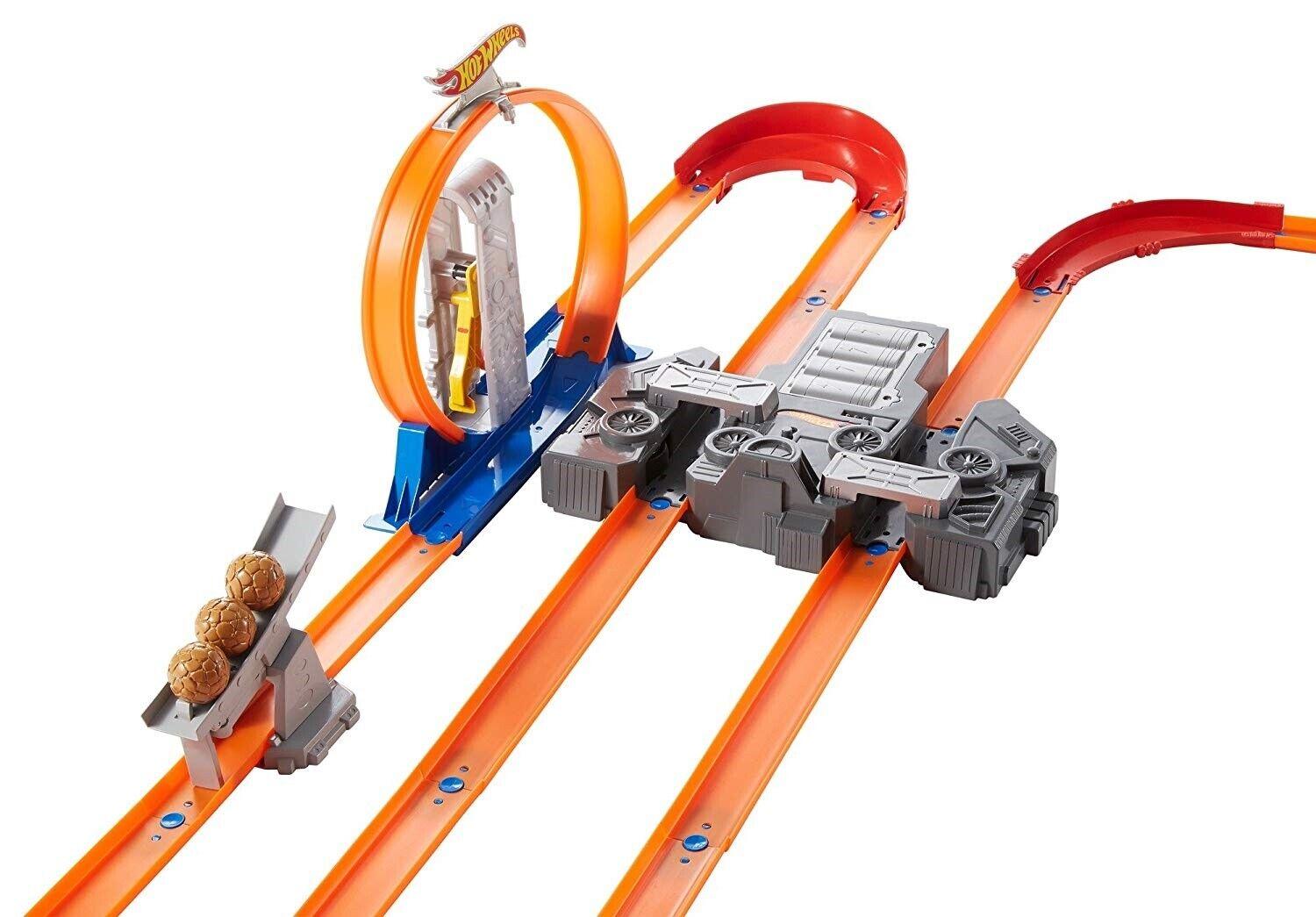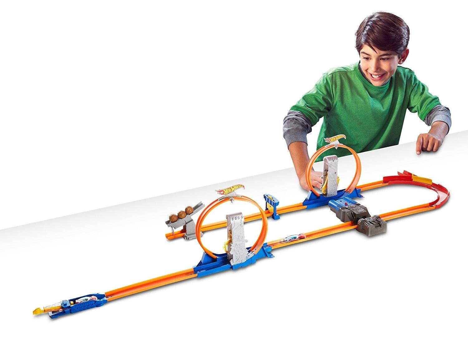 Includes car-activated and action-oriented stunts and 2 quick kick loops,2 quick kick loops feature classic 360-degree action,Comes with 1 Hot Wheels die-cast car