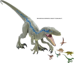 Jurassic World Dominion Large Dinsoaur Toy Super Colossal Velociraptor blue Dino Fun