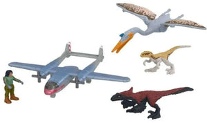 1 pack of 5 mini figures includes 3 Dinos,1 Plane, 1 Human Figure