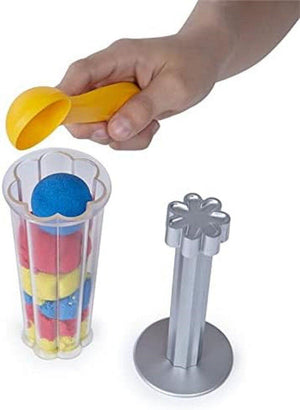 Key Features- DROP AND SQUISH: Includes red, yellow, and blue Kinetic Sand to drop into extruder tubes and squish with the plunger.