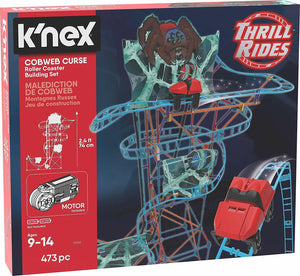 K'NEX: Bring the fun and excitement of an amusement park right into your home as you build with the K'NEX Thrill Rides Cobweb Curse Roller Coaster Building Set. This engineering education toy consists of 473 colorful parts and pieces with premium-quality construction, allowing children to explore endless possibilities and develop their creativity as they build a real-life replica of a roller coaster.
