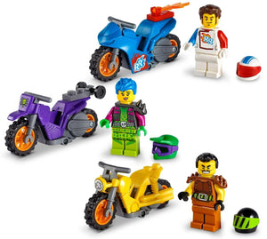 Key Features- Includes 3 LEGO building sets: Wheelie Stunt Bike, Demolition Stunt Bike, and Rocket Stunt Bike