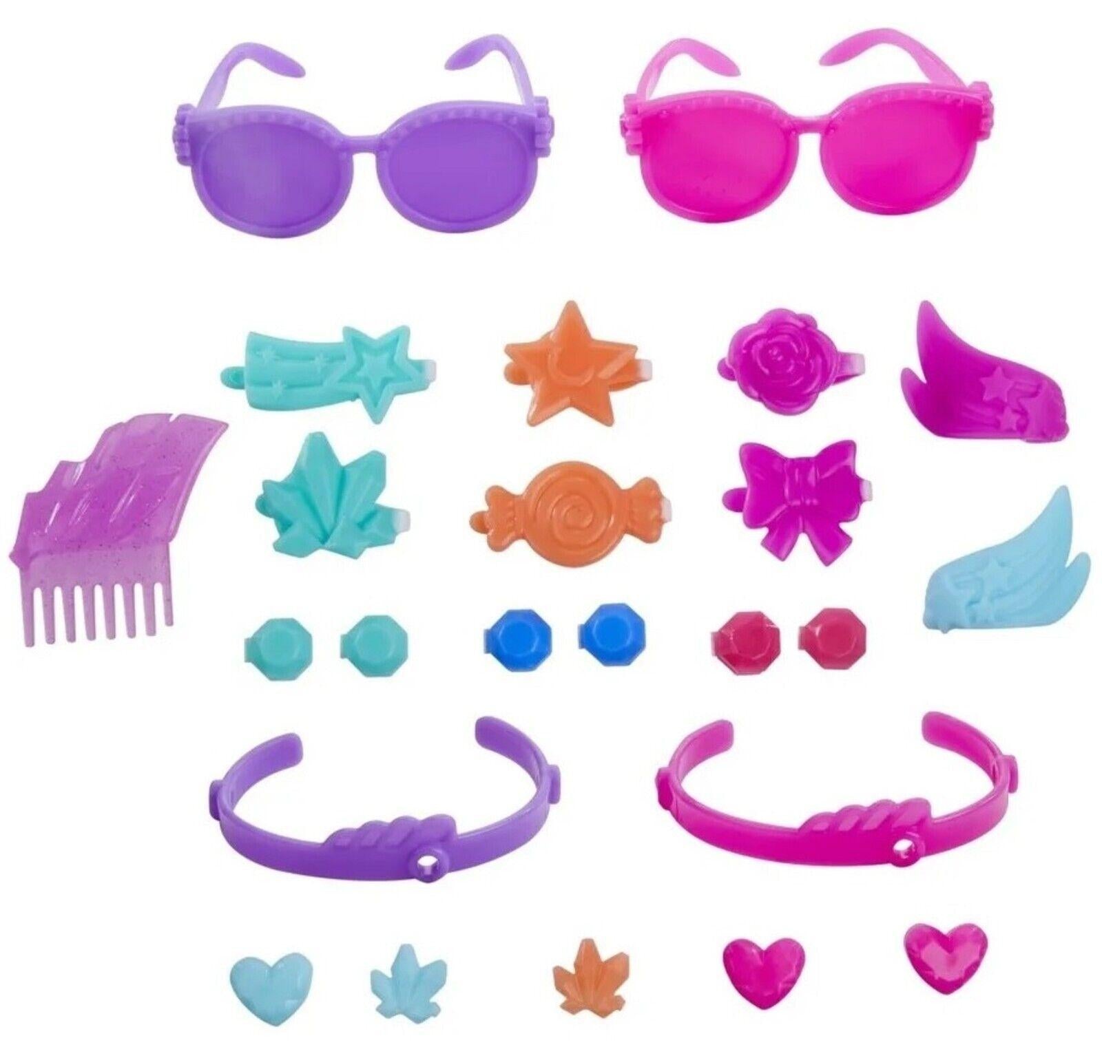 2 Figures (Sunny Starscout and Twilight Sparkle) 24 fashion and hair play accessories, like a comb, clips, and sunglasses