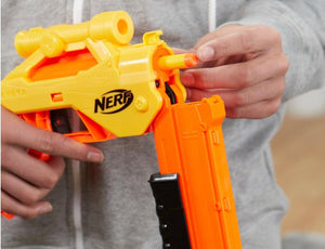 - 2 Stinger SD-1 blasters: Load, prime, and fire each blaster in 3 quick steps to blast 1 dart at a time.