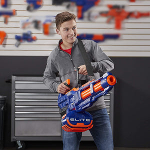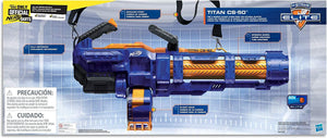 Toy Includes: NERF Elite Titan CS 50 blaster, 50-dart drum, 50 Elite darts, strap and instructions