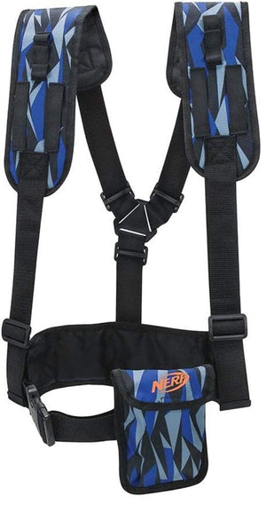 NERF: This NERF Elite Utility Vest holds 4 magazines - two on the front and two on the back with easy access for battle. Also includes 2 elastic dart holders on left and right shoulder straps for individual dart storage and a removable storage pocket. Enhance vest storage by attaching other gear accessories to the adjustable waist band. Adjustable waist band and shoulder straps for multiple size options.