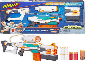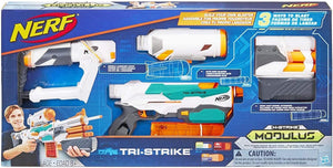 Hasbro: Boys can build their own blaster for each mission with the Nerf Modulus Tri-Strike blaster! The Tri-Strike blaster features 3 different ways to blast that can all be used separately, or combined, for custom configurations. Bring an entire arsenal to the battlefield with the versatility and power of the Tri-Strike blaster!