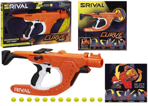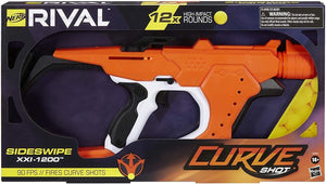Nerf: The Nerf Rival Curve Shot Sideswipe XXI-1200 blaster allows you to select your curve mid-battle to fire around objects, providing a strategic competitive advantage.