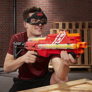 Nerf: The Nerf rival Hypnos xix-1200 blaster has a folding stock and 2 magazines, so players can customize it for action and keep a back-up magazine ready for reloading!
