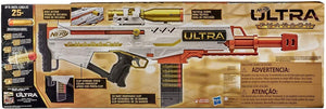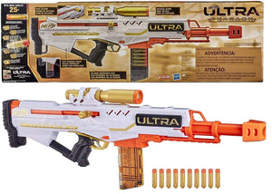Toy Includes: Nerf Ultra Pharaoh Blaster, dart clip, scope, 10 premium gold ultra darts and instructions