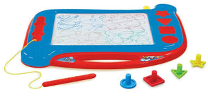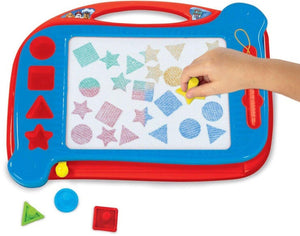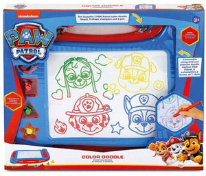 PAW Patrol: Inspire the imaginations of eager little fans with the Color Doodle Drawing Board. Create your very own drawings on this color doodle board by simply drawing, erasing, and then drawing again. The ideal way to encourage children to be creative, this drawing board comes with an attached magnetic pen and removable magnetic shapes (circle, square, triangle, and star) to create all your favorite characters and colorful designs.