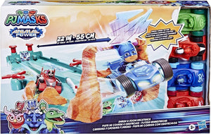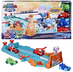 PJ Masks Animal Power Smash and Zoom Race Track Preschool Toy with 4 Cars Play