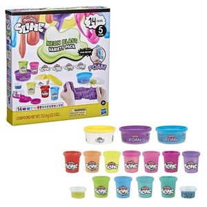 Play-Doh Slime Neon Blast Variety Pack 14 Colors 5 Textures Plus Mix-Ins Playdoh