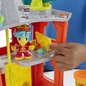Includes Firehouse set, firefighter figure with hat, puppy extruder, roof, flame stamper, water cannon extruder, axe, hydrant extruder, and 4 cans of Play-Doh Brand Modeling Compound