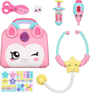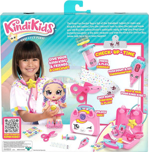 Kindi Kids: Give your Kindi Kids and friends a check-up with the Unicorn Doctor's Bag that unlocks by turning the Unicorn's Horn. Administer a shot with the Press & Play Syringe and check their temperature with the Push Down & See Thermometer. Engage in pretend play with the Shopkins Scissors and Bandage to help and heal your Kindi Kids.