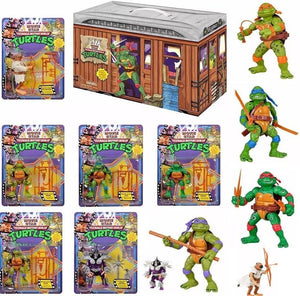 Action figures included: Leonardo, Donatello, Michelangelo, Raphael, Super Shredder, and Splinter!