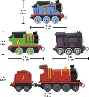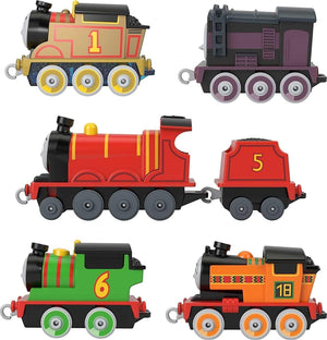 Sodor 5 Pack Push Along Set of 5 die-cast metal, push-along engines featuring Thomas & Friends characters Thomas, Percy, James, Diesel, and Nia