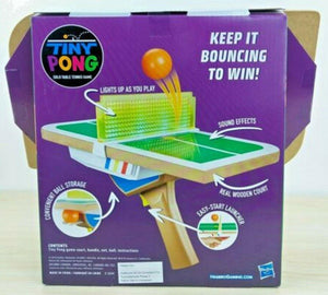 Tiny Pong: The Tiny Pong Solo Table Tennis game brings exciting bouncing action into the palm of your hand! Launch the ball off the court and bounce it repeatedly on the court to rack up points. Move the court back and forth under the ball. Keep it going, getting a point for every bounce. To increase the challenge, switch from Beginner mode to Expert mode. The game responds with lights and sounds as players try to beat their highest score by getting as many bounces as they can! How long can you keep it going?