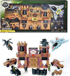 True Heroes Deluxe Military Base Playset Fighter Jet Helicopter Motorcycle Tank