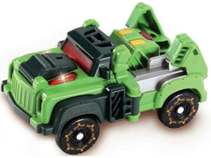 With a few simple steps, you can easily switch between a cool vehicle and a wild dinosaur! Play sound effects in vehicle mode, dinosaur mode and whilst switching! Press the action buttons to hear dinosaur facts and fun sound effects! Educational flash card included.