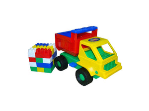 Kuzia: This multicoloured Kuzia Dump Truck has a large tipping dumper and features a tipping cab. It comes with a brightly coloured 18-piece Builder construction set. The colourful bricks easily slot together, making them perfect for little hands. The Truck comes in a high-quality netted bag, providing a great way of developing creativity and hand-eye coordination in small children.