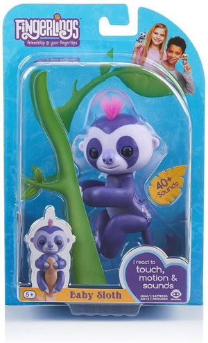 WowWee Fingerlings Baby Sloth Marge Purple Interactive Toy Pet